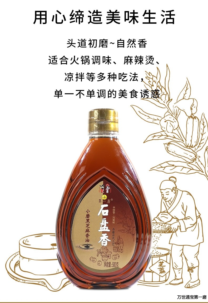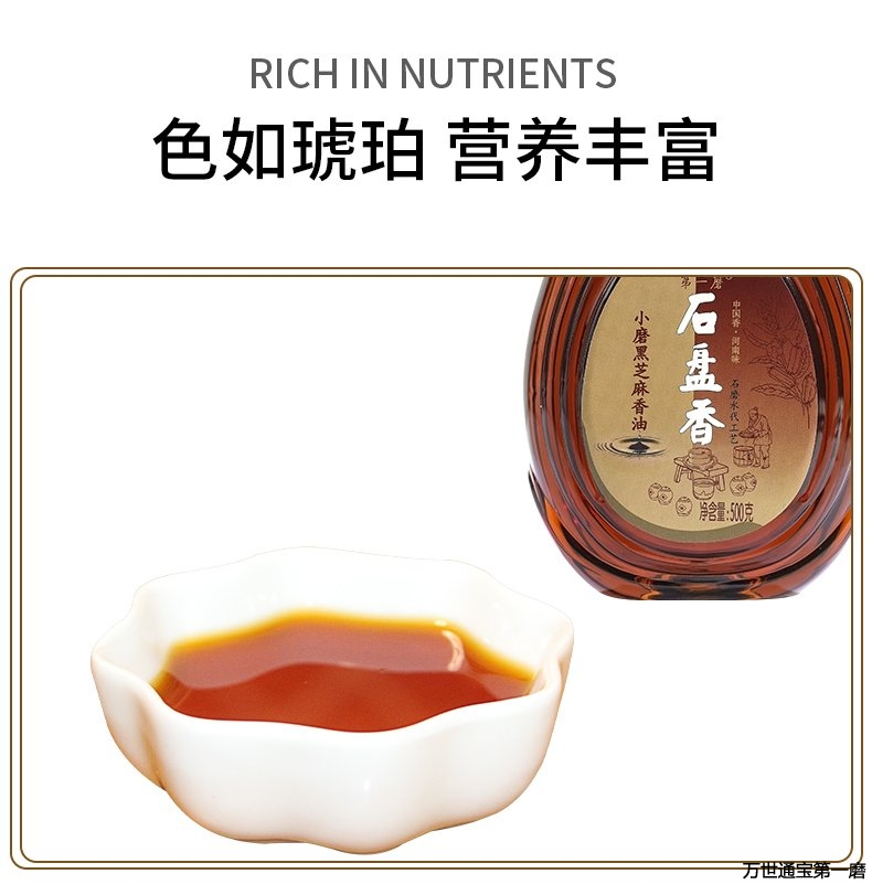 严选优质黑芝麻,采用传统石磨工艺水代法取油,只取头道油,0添加0勾兑。纯正黑芝麻油,不仅闻着香吃着更香。