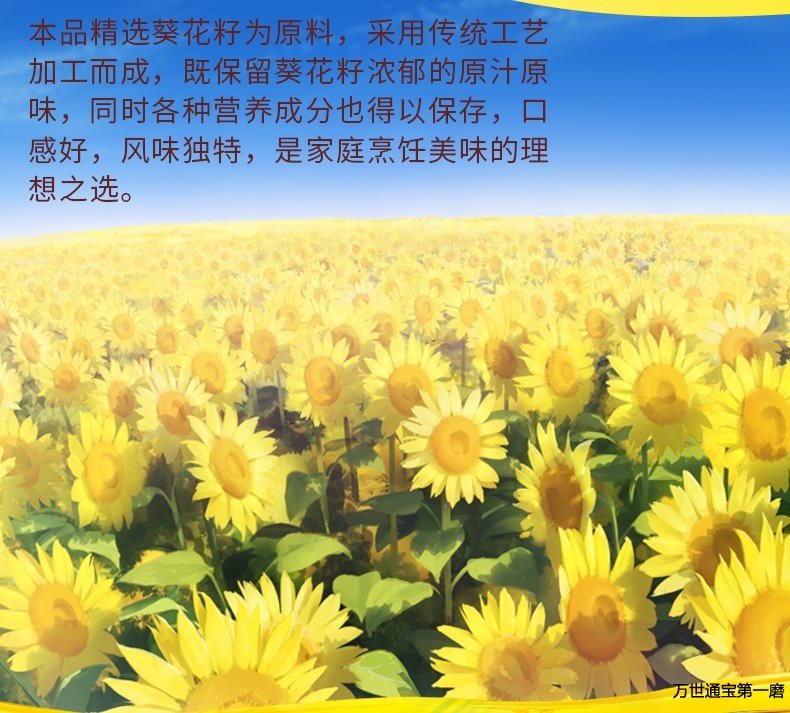本品精选葵花籽为原料,采用传统工艺加工而成,既保留葵花籽浓郁的原汁原味,同时各种营养成分也得以保存,口感好,风味独特,是家庭烹饪美味的理想之选。