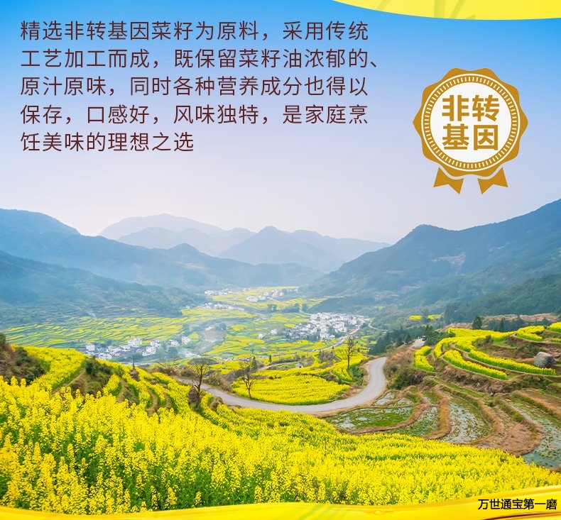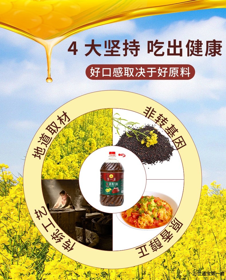 本品精选非转基因油菜籽为原料,采用传统工艺加工而成,既保留菜籽油浓郁的原汁原味,同时各种营养成分也得以保存,口感好,风味独特,是家庭烹饪美味的理想之选。